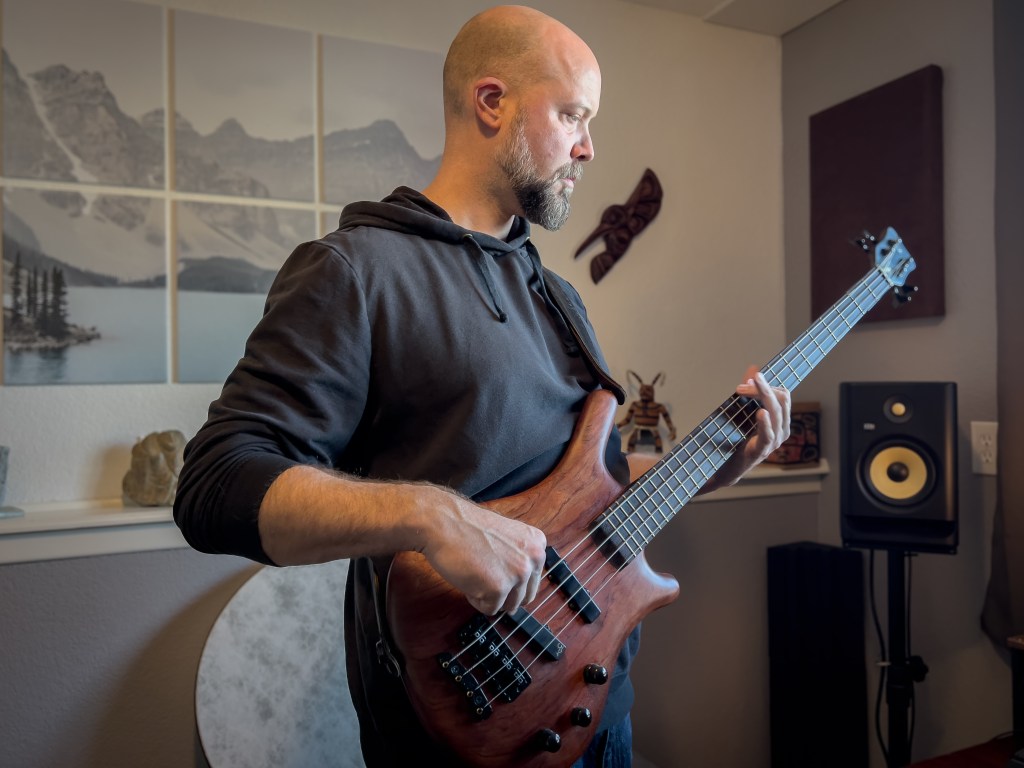 Vouri wrote a special bass solo to play underneath Lehman’s words, and while tracking the album in January the concept grew legs. The duo considered playing the poem in reverse to offset it further from the music, but then Vouri saw an opportunity to use one of his favorite tricks.