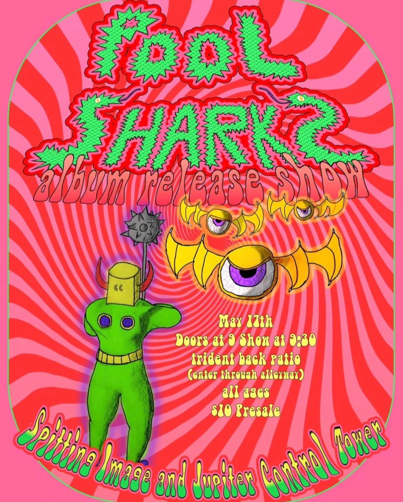 Pool Sharks is Treviño on guitar and vocals, Minard on drums, Tyler Truscelli on bass and Ted Stevens on guitar. The band released its debut album ‘Pool Sharks’ in April, a few days after Minard dislocated his shoulder. Now recovered, Minard and the band will celebrate the new album at Trident Cafe this Friday with support from friends Spitting Image and Jupiter Control Tower.
