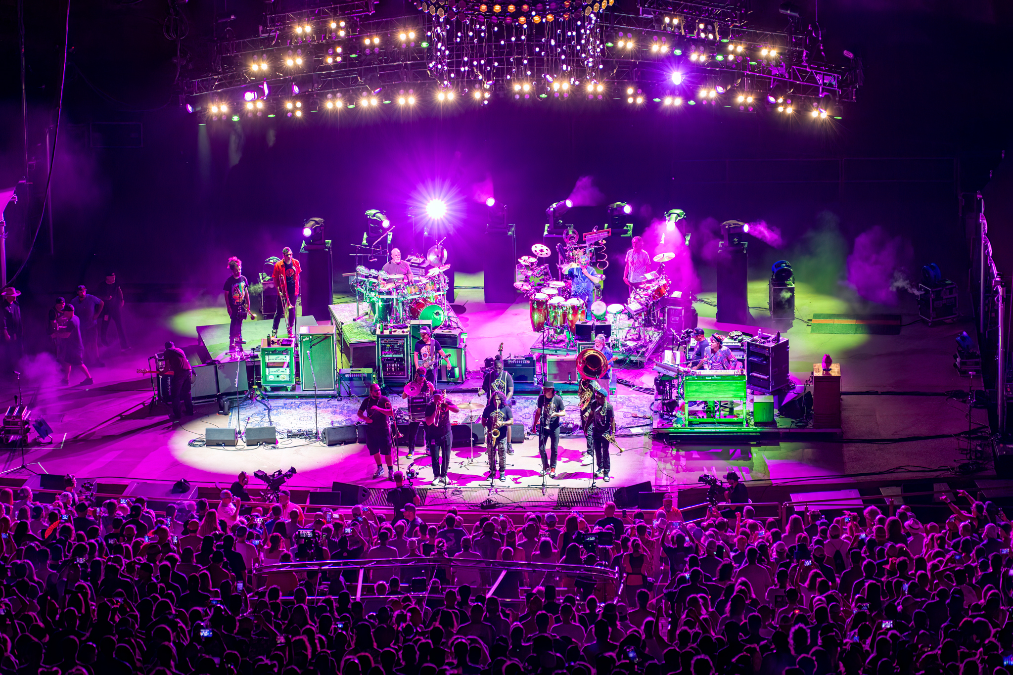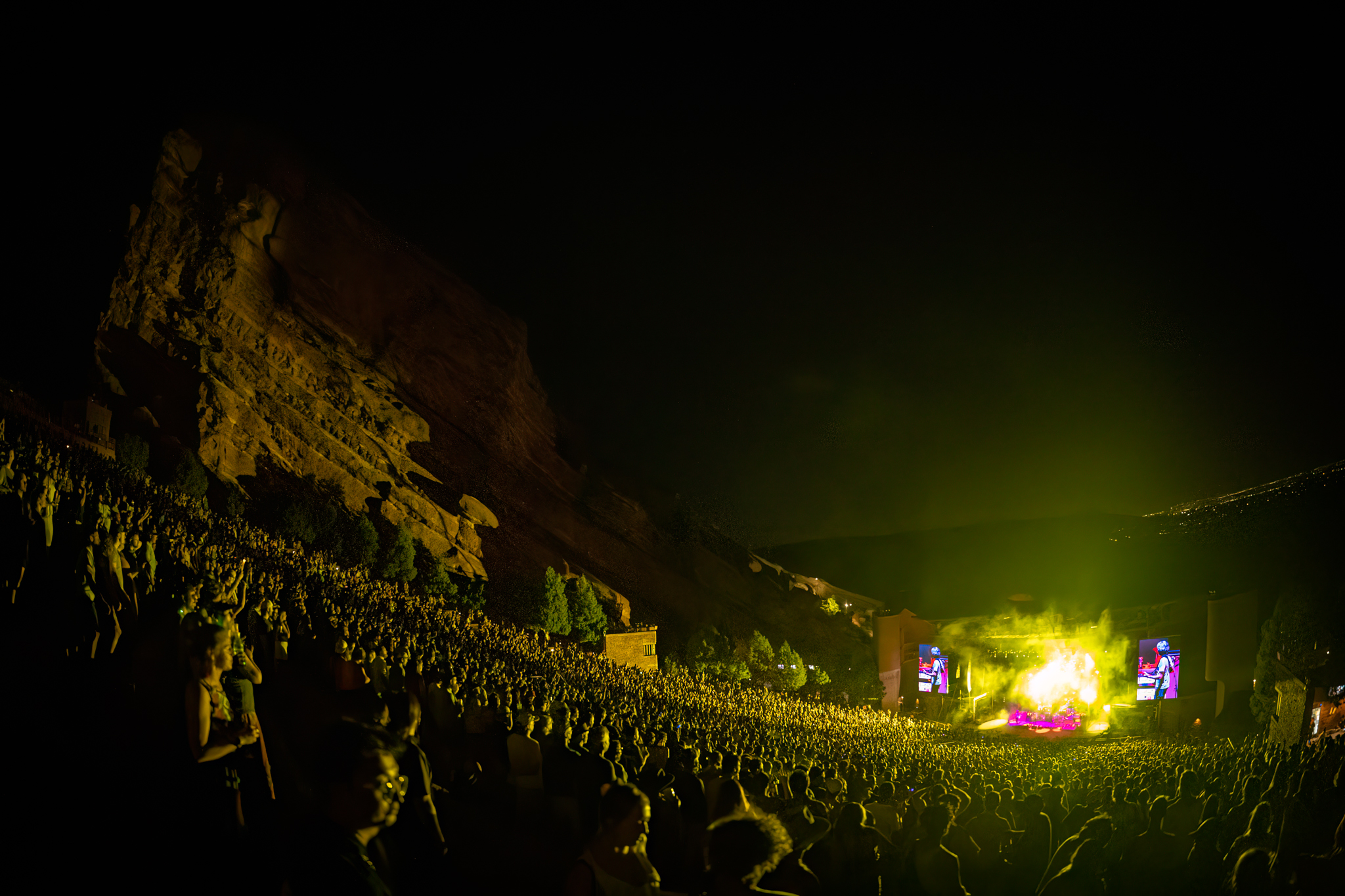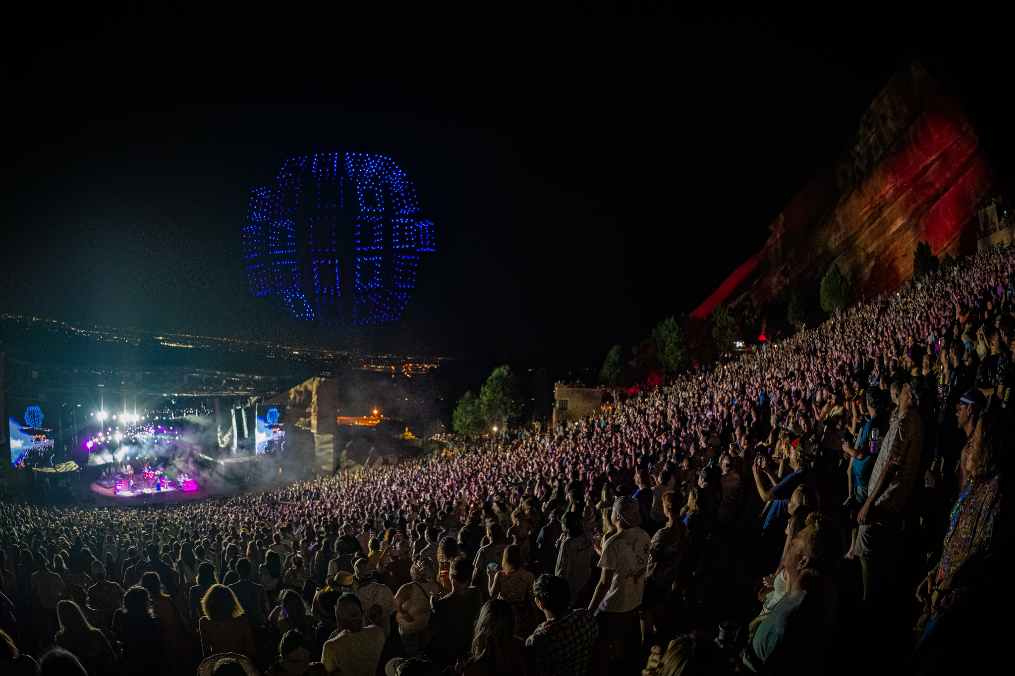 A celebratory run of original songs opened SCI’s first set of six this weekend at Red Rocks. The band and its fans were happy to be back at the home-court venue, dancing in purple, green and gold.