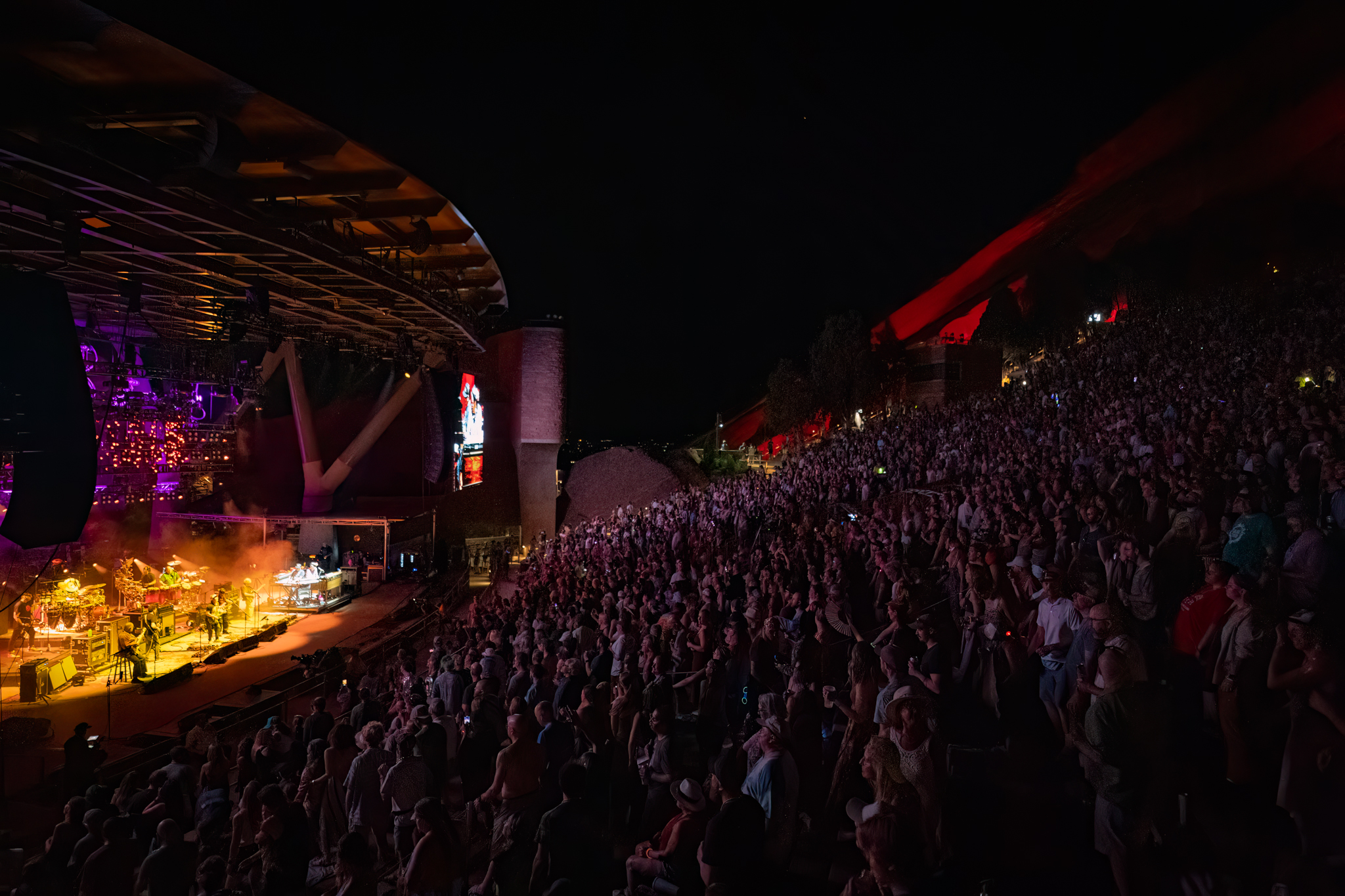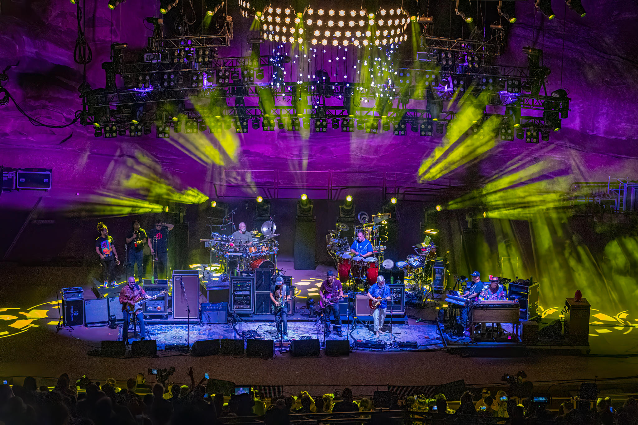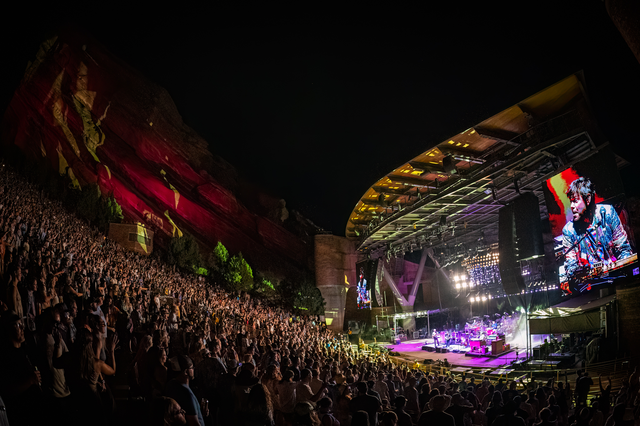 A celebratory run of original songs opened SCI’s first set of six this weekend at Red Rocks. The band and its fans were happy to be back at the home-court venue, dancing in purple, green and gold.