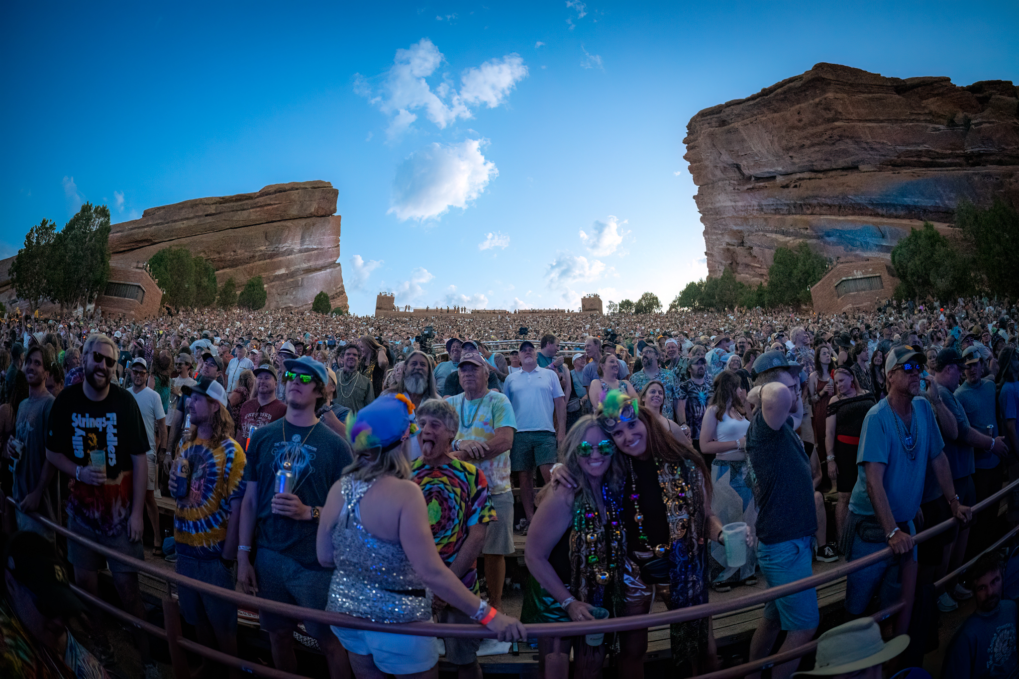 Masked fans sharing beads and hugs reunited in Morrison for the Colorado band’s annual midsummer run, this time celebrating 30 years of SCI. A night billed as ‘The New Orleans Incident’ on tap fueled pre-show energy as the familiar crowd gathered on a 100-degree day.